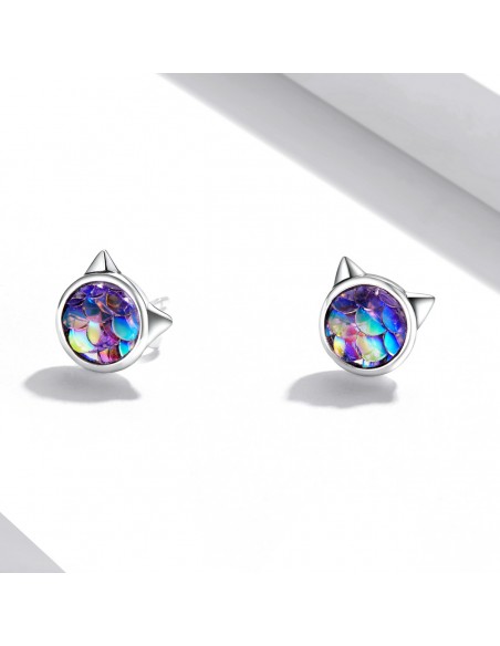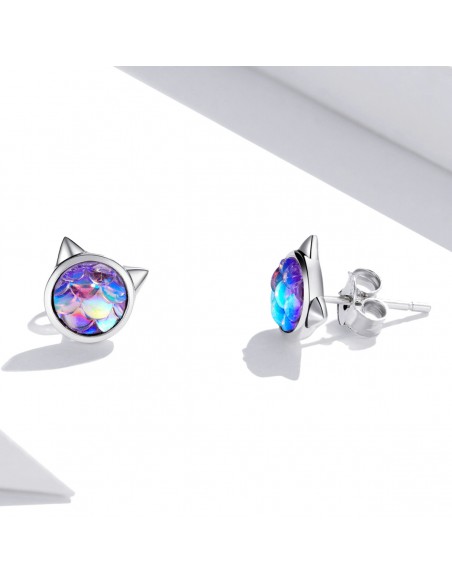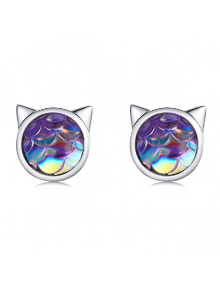 Rainbow Cat - Cercei argint
